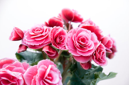 Bouquet of pink begonia flowers on a white background.