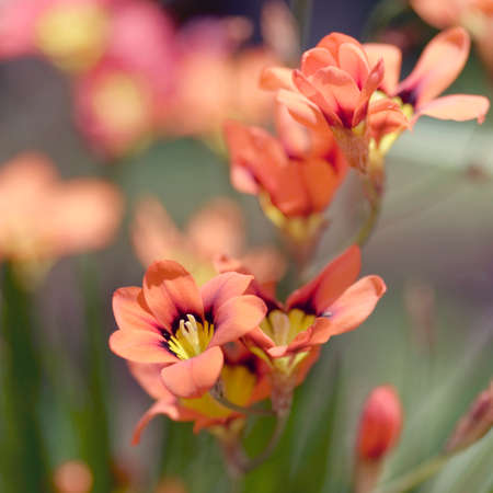 close up of freesia flowers in spring, creative picture, Luannan County, Hebei Province, China.