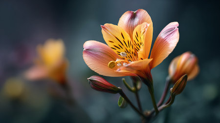 Stunning Orange Alstroemeria Flower with Delicate Black Markings and Budding Companions