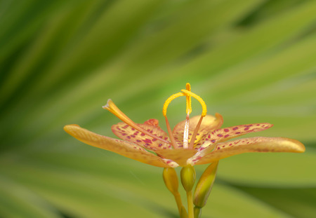 Closeup of ornamental plant Iris domestica, commonly known as lleopard flower .Has healing effects. Blurred background