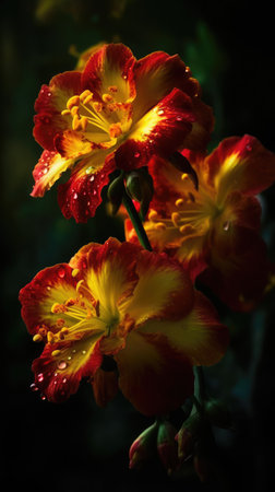 Vibrant Alstroemeria Lilies Displaying Delicate Water Droplets and Intricate Patterns