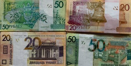 Background of Belarusian rubles of banknotes, texture of Belarusian rubles