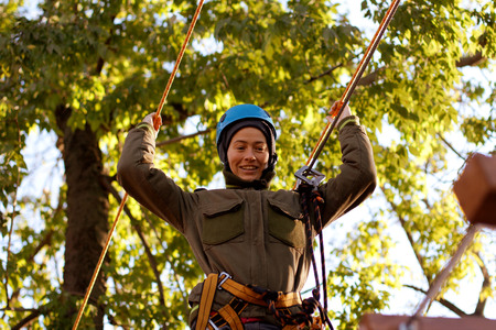 Happy woman enjoying activity in a rope park