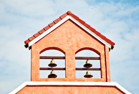 three bells from church with sky at background