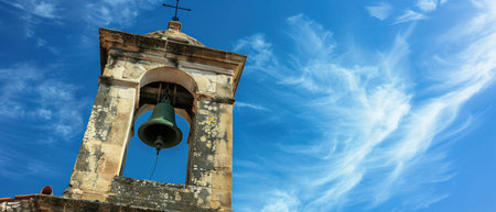 Ancient church bells on blue sky background