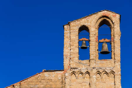 St Dominic medieval church belfry with two bells, in the historic center of Arezzo (13-14th century), with copy space