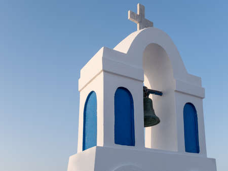 White and blue bell tower in Santorini - Greece