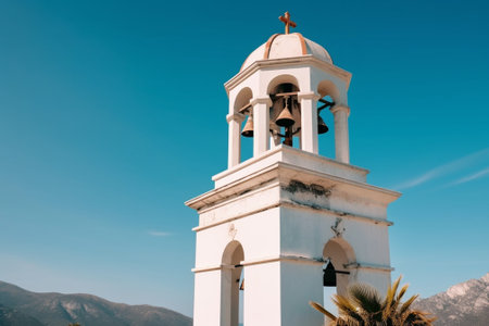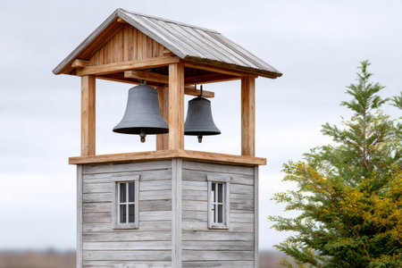Small bell tower with a bell of a country Orthodox church : Generative AI