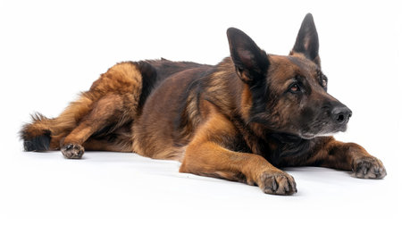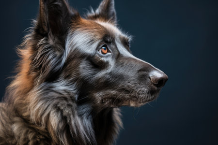 A stunning studio portrait of a noble German Shepherd, captured in a regal profile against a dark, textured background. The dogs alert expression and dignified posture convey a sense of loyalty, intelligence, and quiet strength, making it a powerful symbol of companionship and protection.