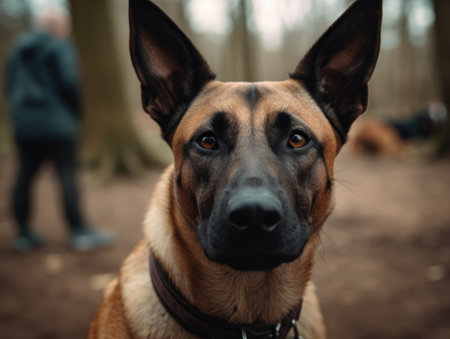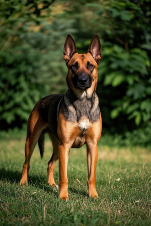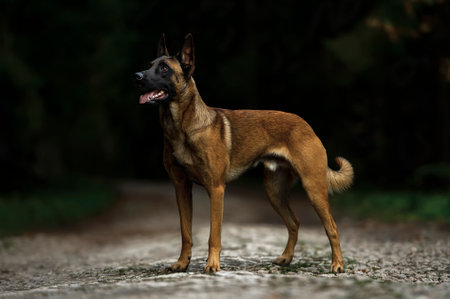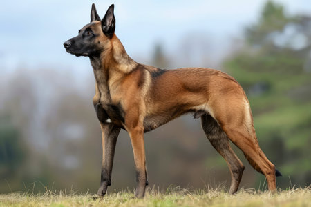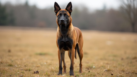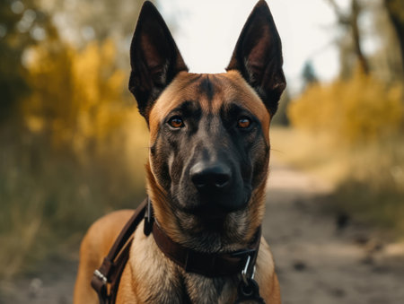Majestic Belgian Malinois Dog Standing in Natural Outdoor Environment with a Focused Gaze AI Generative