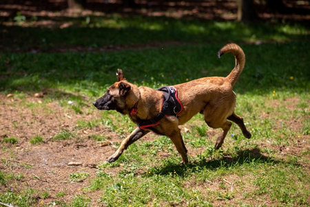 Belgian Shepherd Dog running in the park. Selective focus on the dog
