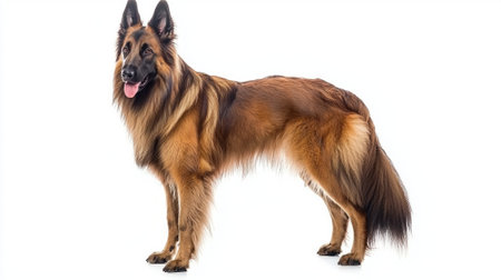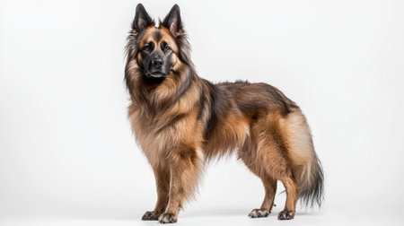 Belgian Tervuren stands tall and elegant, its luxurious coat glistening as it gazes confidently, embodying grace and intelligence in a minimalist setting.