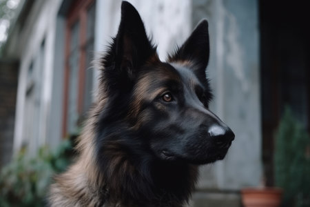Portrait of a German Shepherd dog in the background of the house Ai generated