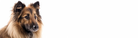 Belgian Tervuren Dog On White Background. Banner, Panorama Or Website Header Format.