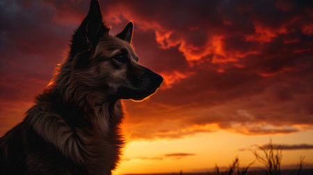 German shepherd dog portrait at sunset. Dog on the background of the sky.
