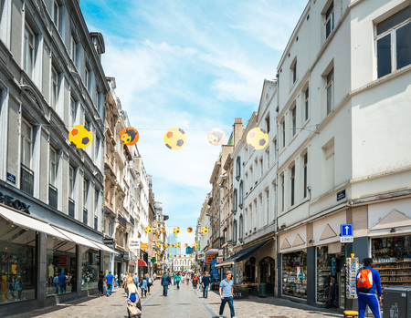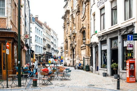 BRUSSELS, BELGIUM - June 16, 2016. Street view of old town in Brussels city, with a population of over 1.8 million, the largest in Belgium.