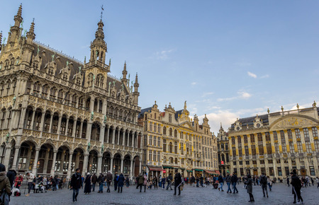 BRUSSELS, BELGIUM - Tourists at the Grand Place of Brussels MARCH 26 2018: on March 26,2018 in Brussels, Belgium