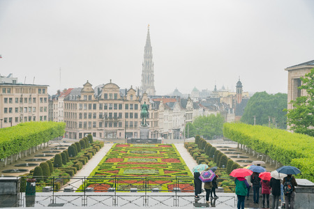 Brussels, APR 29: Rainy view of the famous Mont des Arts on APR 29, 2018 at Brussels, Europe