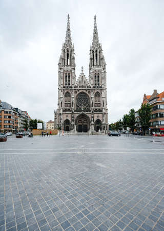 Ostend, Belgium - Jul 16, 2011: Tilt-shit lens used for big facade of Neo-Gothic Sint-Petrus-en-Pauluskerk the main church of Ostend, Belgium a Roman Catholic church