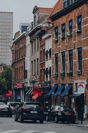 LIEGE, BELGIUM - February 24, 2018: Street view of downtown in Liege city, Belgium