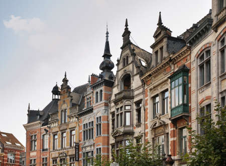 Brussels, Belgium; 04 29 2016. Buildings in Ravensteinstraat (ravenstein street). Facades of the beautiful historical buildings located on this street.