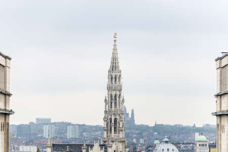 The spire of the Brussels City Hall seen from the Mont des Arts, Belgium