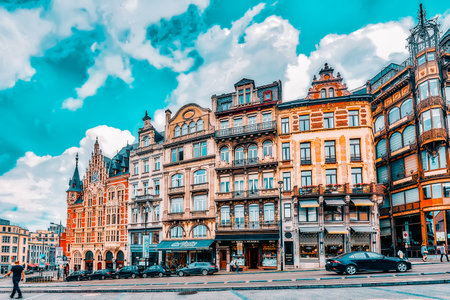 ANTWERP, BELGIUM - JULY 5, 2016 : Historical city hall and old town of Antwerp with stylish architecture. Antwerp is the capital city in the region of Flanders, Belgium