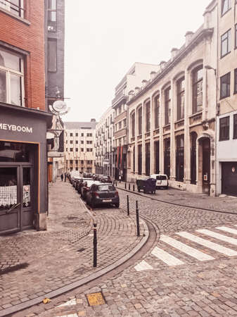 Brussels, Belgium circa January, 2020: Streets of Brussels, the capital city of Belgium, european architecture and historical buildings