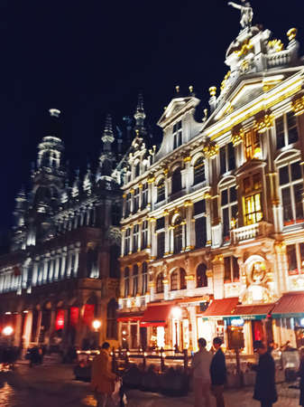 Brussels, Belgium circa January, 2020: The Grand Place square in Brussels, the capital of Belgium, famous historical landmark at night