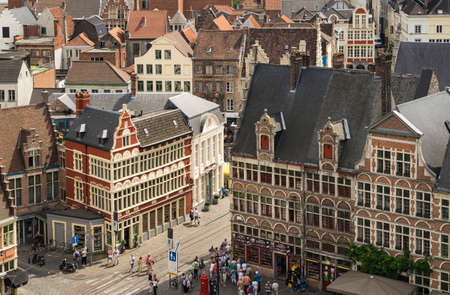 Aerial view of an area of ?? Ghent in Belgium, where the typical architecture of the area is seen.