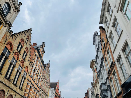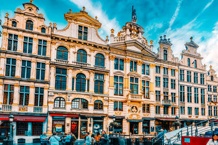 Brussels, Belgium - July 14, 2019: Colorful brick buildings of typical Belgian architecture in Brussels, Belgium
