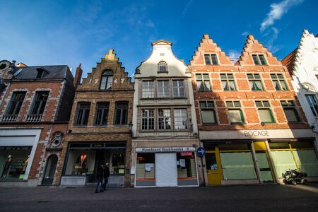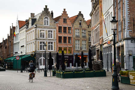 Brugge, Belgium - November, 2017. Brugge medieval historic city. Brugge streets and historic center, canals and buildings. Brugge popular touristic destination of Belgium.