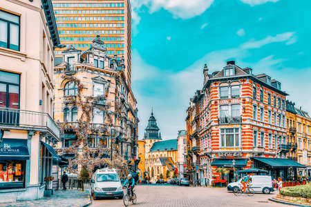 BRUSSELS, BELGIUM - AUGUST 21, 2013: Urban scene, streets and buildings in Brussels, Belgium
