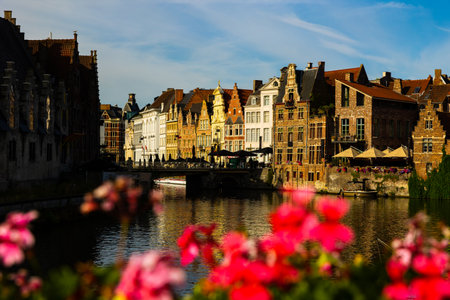Summer streets and riverside of Ghent, Belgium