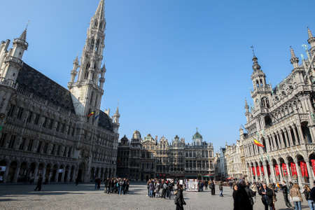 The Grand Place Main Square with the Hotel de Ville Town Hall to the left, Brussels, Belgium - 03 March 2011