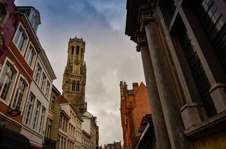 BRUGES, BELGIUM - DECEMBER 12: View of Bruges city center on December 12 in Bruges, Belgium. It is a city and a municipality located in the Flemish region.