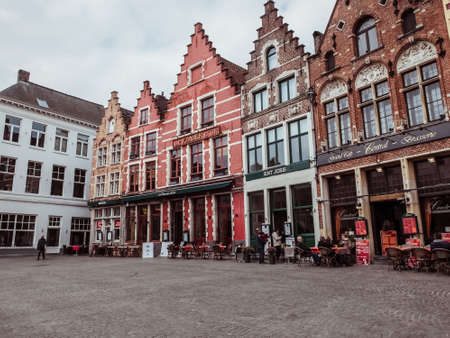 Brugge/Belgium - 26/10/2019: Beautiful houses of the main city square.