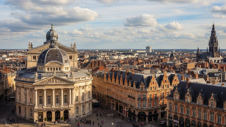 Mons city - Belgium - May 7 2012: Beautiful town square View historic buildings on a summer day Landscape aspect with copy space
