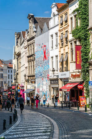 BRUSSELS, BELGIUM - JULY 07, 2016 : City views cozy European cities - Brussels, Belgium and the European Union's capital. Streets, cafes, restaurants and the people on them