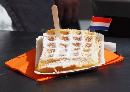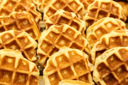 Typical sweet waffle from Belgium, typical dessert detail, tourism