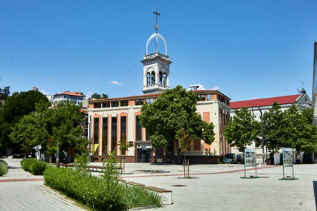 PIROT, SERBIA - JUNE 15, 2019: Square and Building at the center of town of Pirot, Southern and Eastern Serbia