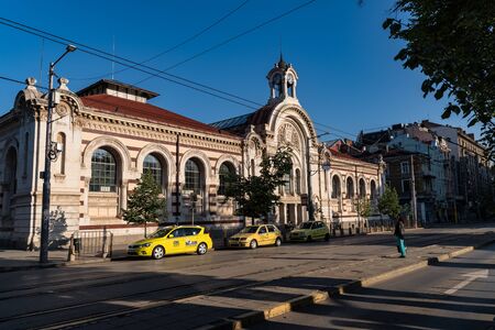 Sofia, Bulgaria - May 2, 2019: Knyaginya Maria Louise Boulevard and Central Sofia Market building.