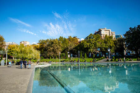 Yerevan, Armenia - October 31, 2019: The Swan Lake in Yerevan, Armenia