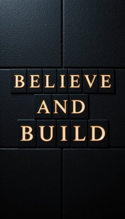 This image features an inspiring message Believe and Build on a black wall, symbolizing motivation and empowerment to pursue dreams and goals.