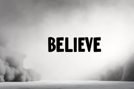 Believe Inspirational Word Art in Minimalistic Black and White Design.