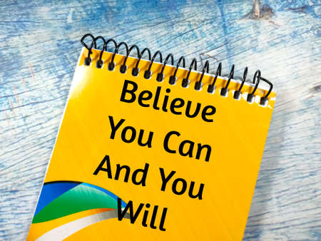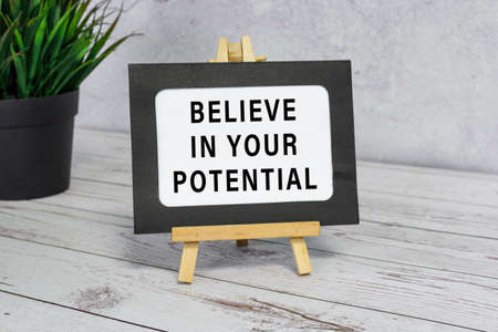 Motivational quotes on note pad on wooden desk - Believe in your potential.