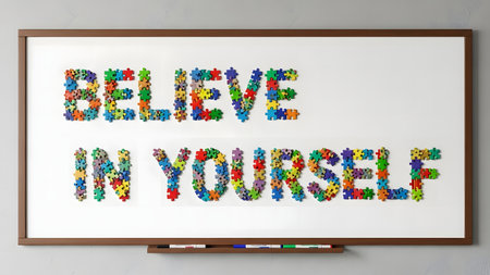 BELIEVE YOURSELF word made of colorful puzzle pieces