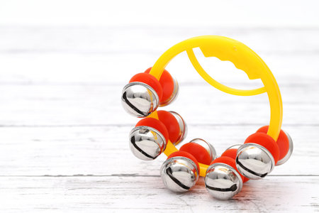 colorful jingle bell on a white wooden table
