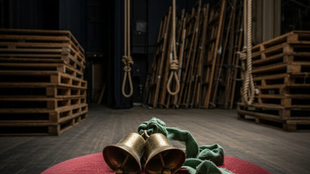 Golden handbells ready to play close up