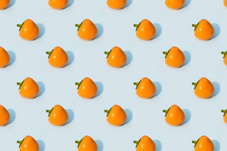 Pattern with sweet pepper. Vegetables abstract background. Pepper on turquoise blue background.